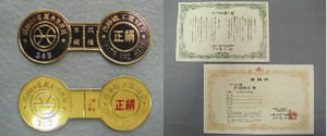 もちろん伝統工芸士による手織りでございますが、柄の部分だけ紋紙を使用し合理化して織っています。そのため、爪掻きとは異なり柄の部分の裏に色糸が見えます。太古のところは仕立で隠れますが、お腹は柄により沢山色糸が見える場合がありますのでご了承下さい、ご使用には全く差し支えありません。